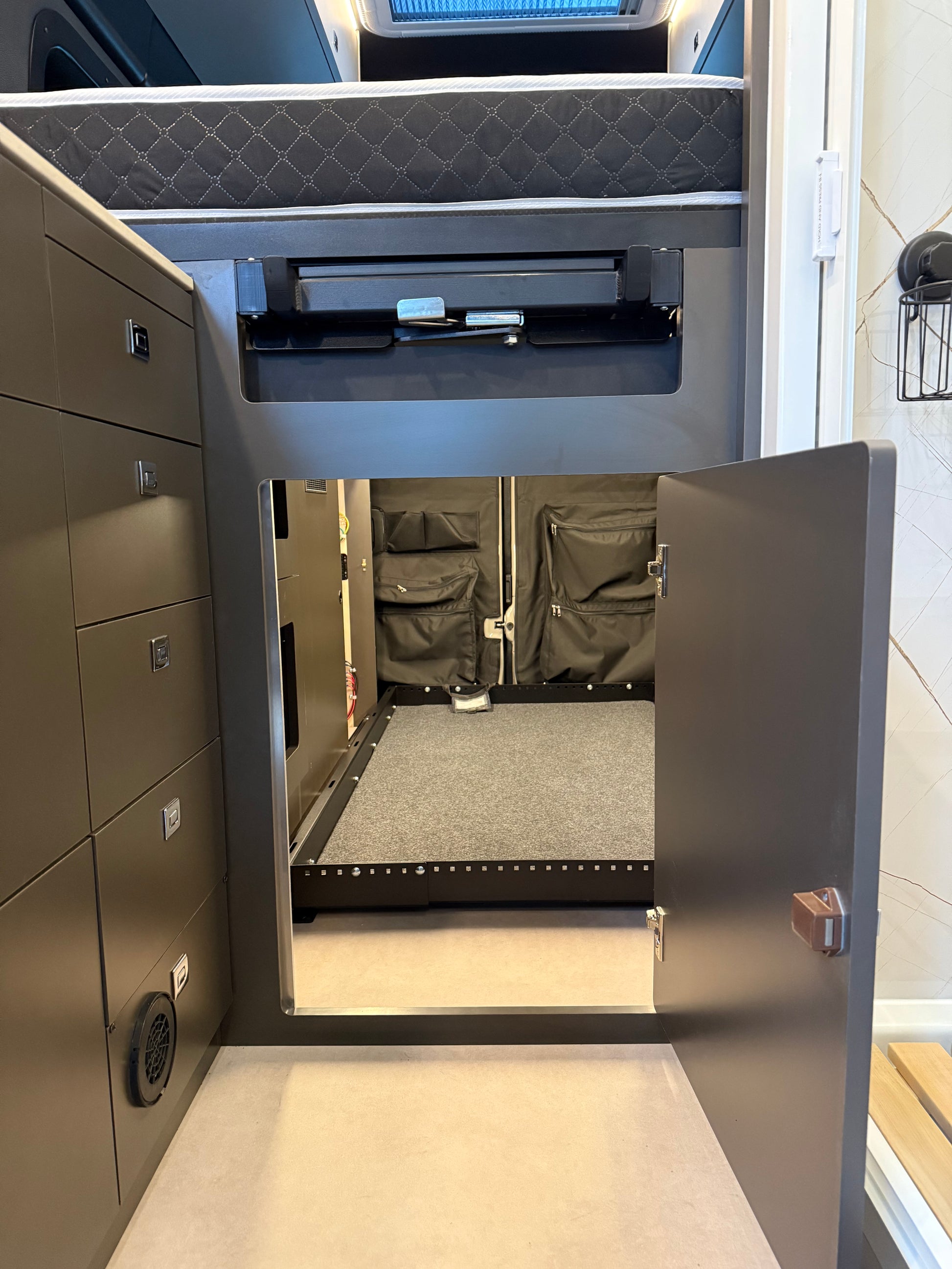 - Nombreux rangements sous la banquette avant et dans les armoires latérales